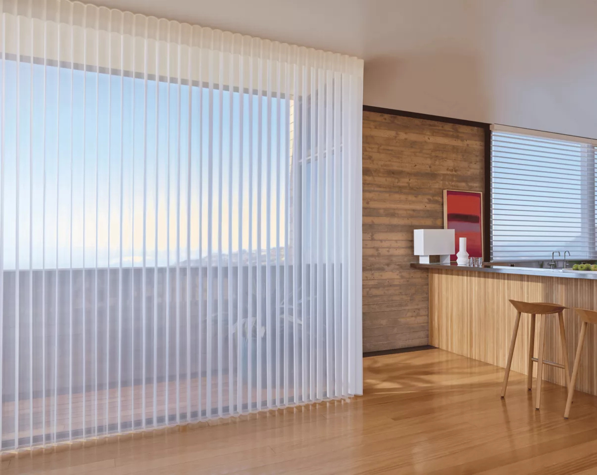 Drapery-like sheers provide a soft, radiant glow, expertly designed to balance light control and privacy. Sheer panels seamlessly blend sheers and blinds, making them ideal for doors and large windows.