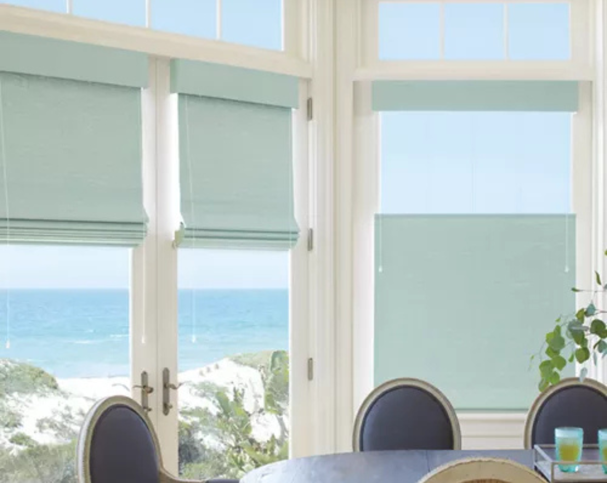 Woven wood drapes bring an organic touch and rich texture to any space. Available in a variety of styles—Roman, Waterfall Roman, Recessed Roman, and Vertical Drapery—they create a warm, inviting, and cozy atmosphere.