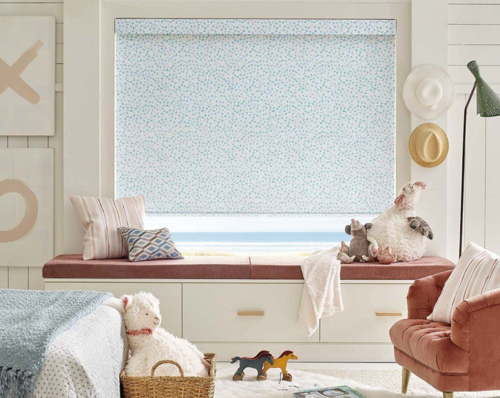 Roman shades offer a drapery aesthetic, but with more versatility in terms of light control. They look great on their own or paired with side panels or drapery. Roller shades can be automatic or manual